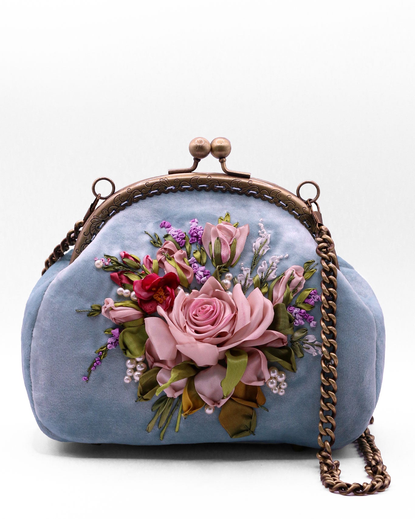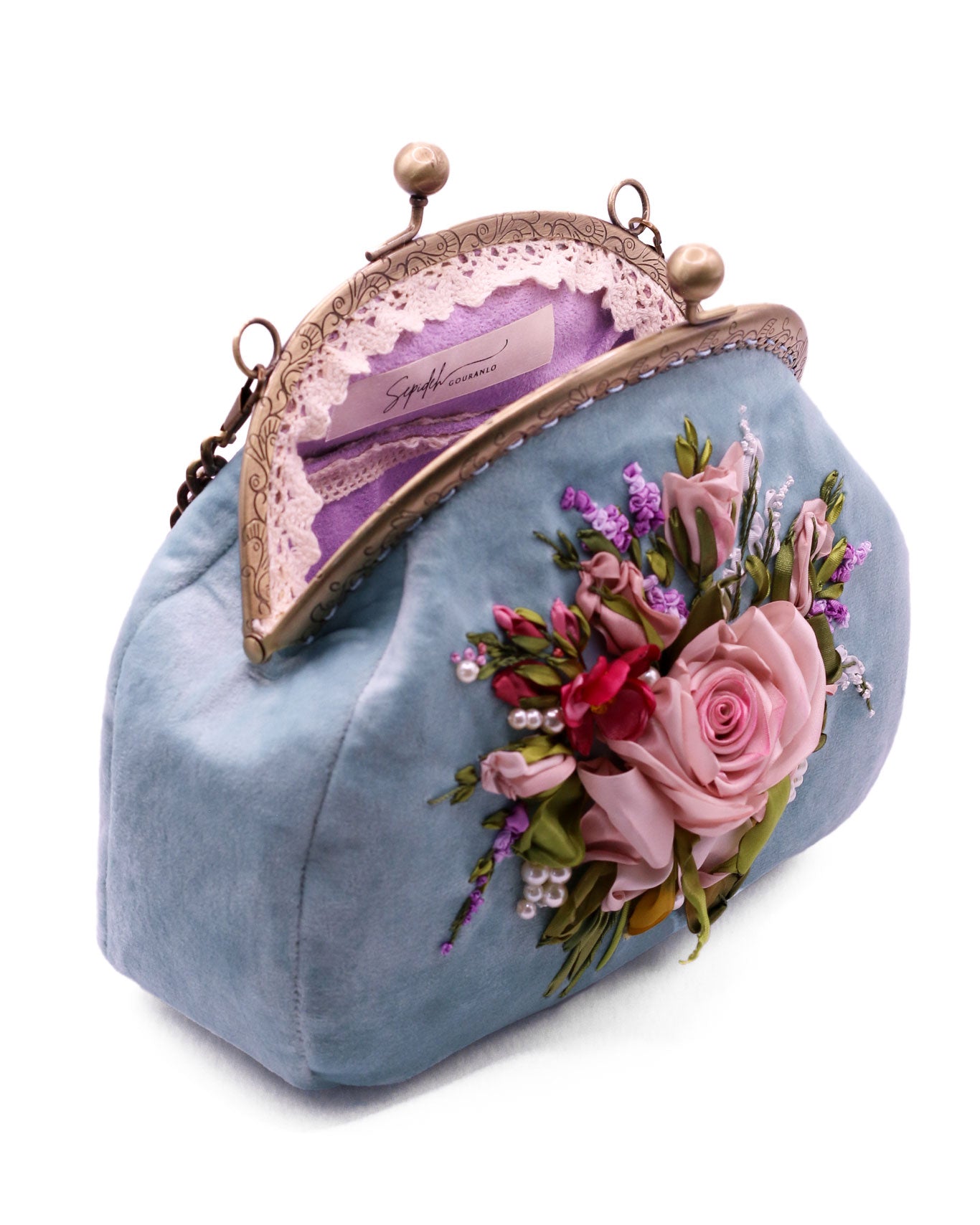 Bag Material: Light Blue velvet with a soft and luxurious texture